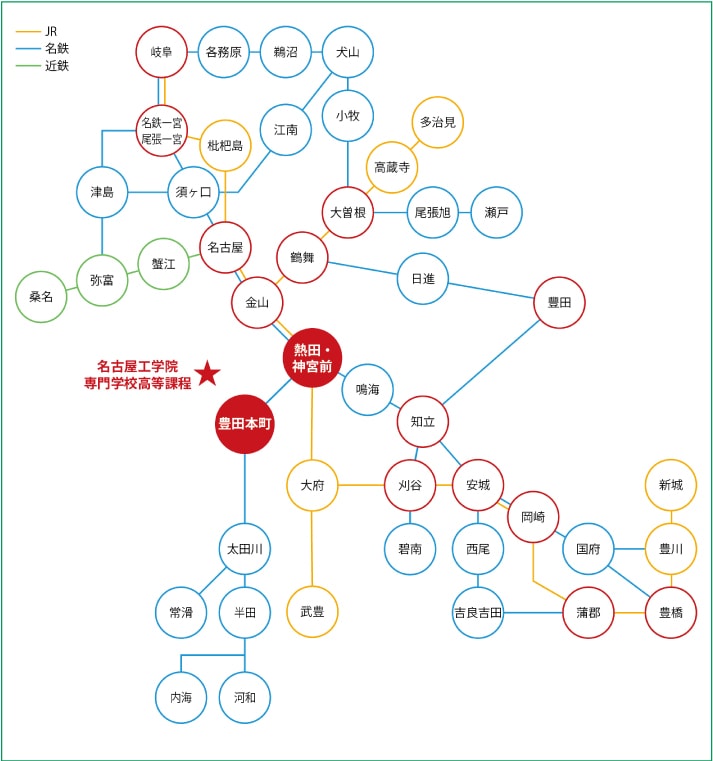 JR東海道本線 熱田駅下車 南へ徒歩20分(学園バスセンターからスクールバスが利用できます)