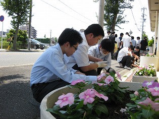 5月30日(火)、環境委員を中心に校舎前の花壇の植え替えを行いました。