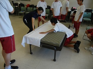 その中でも『介護職員初任者研修』の講習では、校内にベッドや介護器具を持ち込み、約20日間かけて行わ