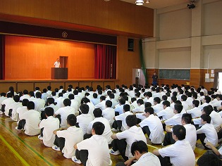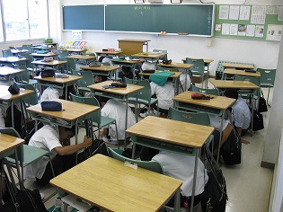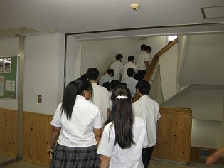 地震災害に関するDVDを視聴後、東海地方に震度6の大地震が発生し、3m以上の津波が発生しての訓練
