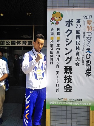 10月5日から愛媛県で行われた第72回国民体育大会ボクシング競技にて、本校から本島翼君が出場し、3位入賞となりました。
