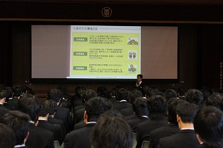 12月18日(月)、SMBCコンシュマーファイナンス株式会社 鹿島厚志氏を招き、3年生を対象に「生活設計セミナー」を行いました。