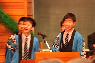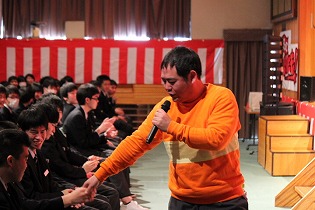 第1部では、生徒会によるメッセージDVDを鑑賞し、3年生教職員によるアトラクションで大いに盛り上がりました。