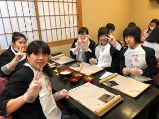 校外研修2日目の3月16日(金)、肌寒い一日となりましたが、京都方面で八つ橋づくりを体験し、嵐山周辺を散策しました。 1年生にとっては初めての宿泊研修でしたが、学校生活の良き思い出を作ることができました。